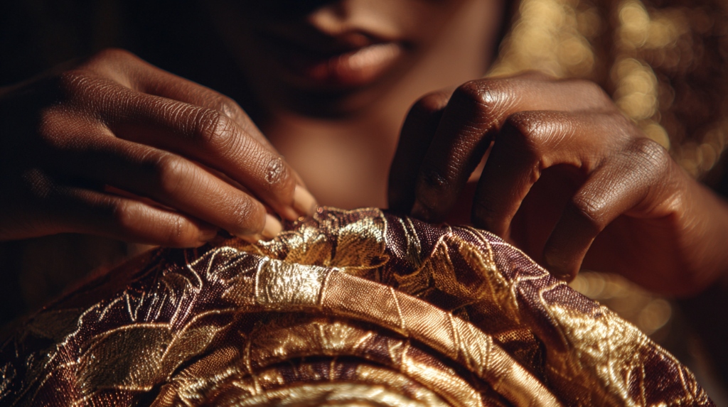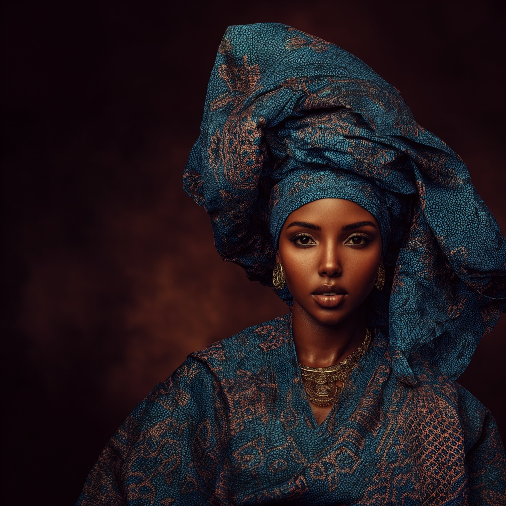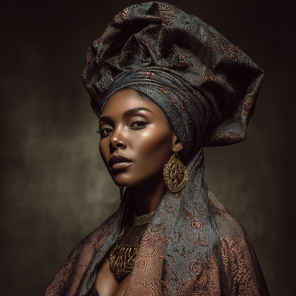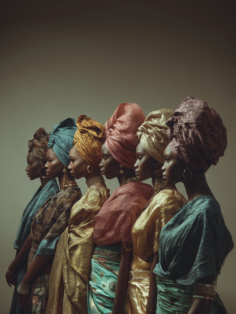 Intricate headwrap styles that echo centuries of trans-regional textile trade and shared coastal West African adornment practices.